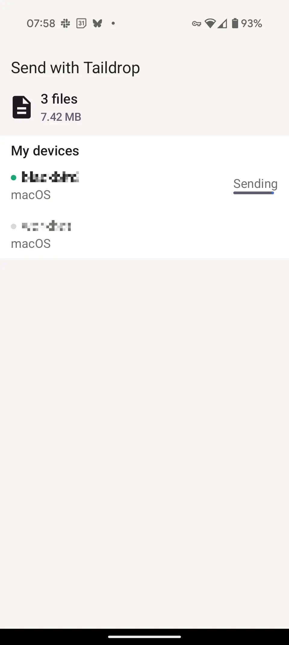 Until I realized Tailscale — a VPN1 that I love and use — has a feature called Taildrop. The name suggests it’s meant as an AirDrop competitor, and I’ve been super happy with it.